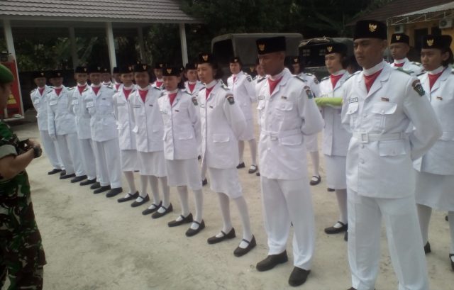 GELUMBANG, Warta Reformasi_ Nah, Pasukan Pengibar Bendera Pusaka (Paskibraka) di Kecamatan Gelumbang ,Kabupaten Muara Enim Sumsel,tampaknya sudah siap seratus persen pada jelang Upacara pada Jum:at Tgl.17/08/18,yang akan dipusatkan dihalaman Kantor Camat Gelumbang itu. Ada 28 orang Paskibraka yang telah di didik dan di gembleng selama 1 bulan dalam persiapan Upacara. hal tersebut dikatakan pelatih Paskibraka Pelda TNI dari Kesatuan Kodim 0404 Muara Enim ,yang dibantu anggota Pelda TNI Manulang ,dan Anggota Polsek Gelumbang Bripka Dian Saputra ,serta Bripka Yogi.
