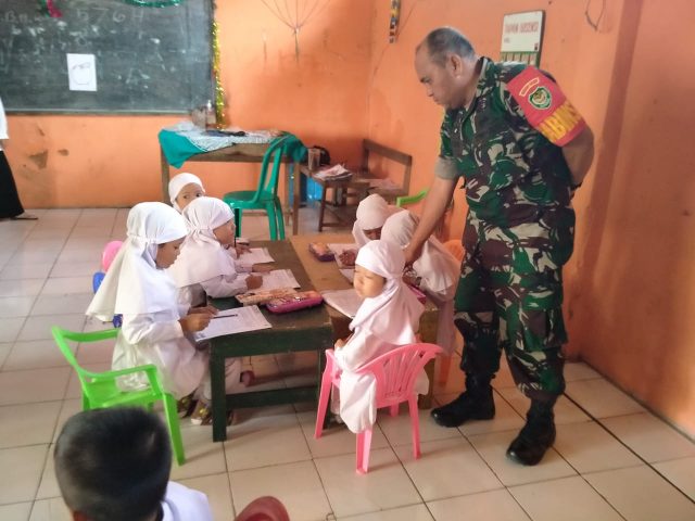 Beranda Banten Jadi Guru Sementara, Babinsa Koramil 02/18 Ajarkan Sikap Toleran ke Siswa SD
