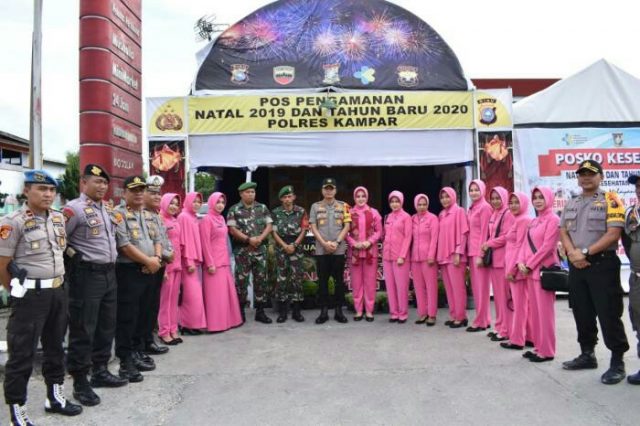Kabupaten Siak Hulu – Riau, Warta Reformasi formasi – Di penghujung Tahun 2019 Kapolres Kampar AKBP Mohammad Kholid SIK bersama Ketua Cabang Bhayangkari Kampar Ny. Angela Kholid, kunjungi Pospam Operasi Lilin Muara Takus 2019 di Jalan Pasir Putih Desa Pandau Jaya Kecamatan Siak Hulu, Selasa sore (31/12/2019).