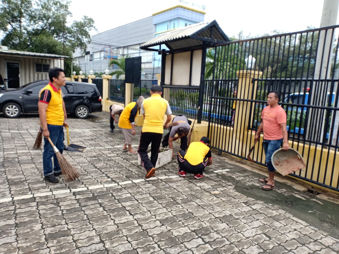 “Kerja Bakti dilaksanakan di sekitar halaman Mapolsek dalam rangka menciptakan Mako Polsek Kawasan Muara Baru yang bersih dan asri serta antisipasi bahaya banjir dalam menghadapi musim penghujan,” ujar AKP. Slamet Riyanto.