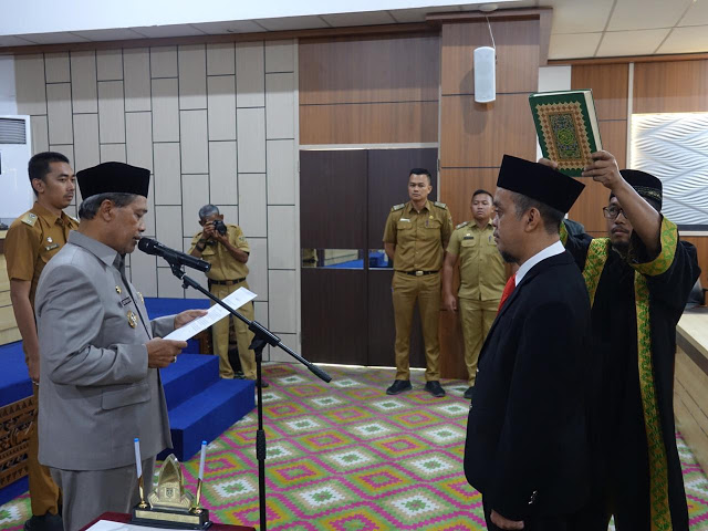 Gunung Sugih-Lampung Tengah, Warta Reformasi – Bupati Lampung Tengah Loekman Djoyosoemarto melantik dan mengambil sumpah Ir. Zulkifli, S.E., M.M. sebagai Penjabat Sekretaris Daerah (Sekda) Kabupaten Lampung Tengah, Selasa (14 /1/2020).