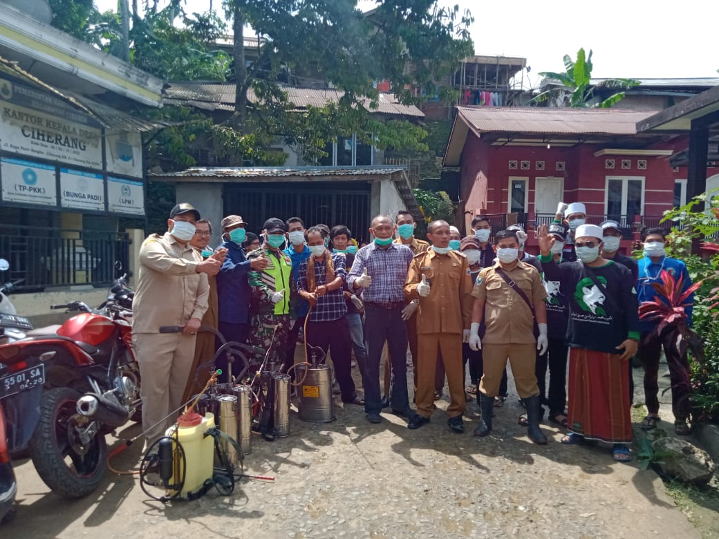 Pemerintahan Desa Ciherang, dengan adanya wabah Covid-19 yang dihadapi oleh dunia secara global dan tidak terkecuali negara kita yang sudah menasional, maka kami selaku kepala desa merasa terpanggil guna bersama-sama menghadapi ujian ini dengan berinisiatif secara mandiri dalam bentuk swadaya bersama warga melakukan tindakan pencegahan dan penyebaran wabah virus Covid-19,” Ujar Badi.