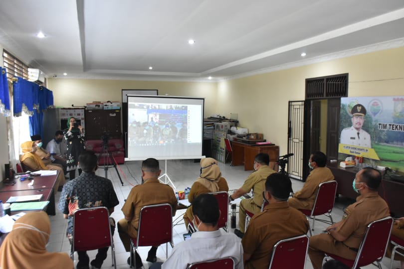 Ikut pada teleconfrense tersebut Kepala Dinas Ketahanan Pangan Kabupaten Kampar Ir. Cokroaminoto dan Sekretaris Halim, Kepala Ali Sabri Kepala Dinas Perindustrian dan Tenaga Kerja Kabupaten Kampar, mewakili kepala Badan Penanggulangan Bencana Daerah Kampar.