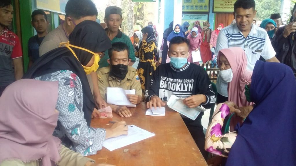 Lebak – Banten, Warta Reformasi – Pelaksanakan Pembagian BLT-DD Girimukti tahap 1 tahun anggaran (TA) 2020, bagi warga terdampak Covid-19 berjalan lancar dan kondusif. “pembagiannya berlansung di kantor Desa Girimukti Kecamatan Cilograng Kabupaten Lebak Provinsi Banten, Selasa (9/6/2020).