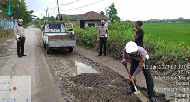 Merespon Keluhan Masyarakat Viral di Medsos, Dirlantas Polda Banten Tambal Jalan Rusak