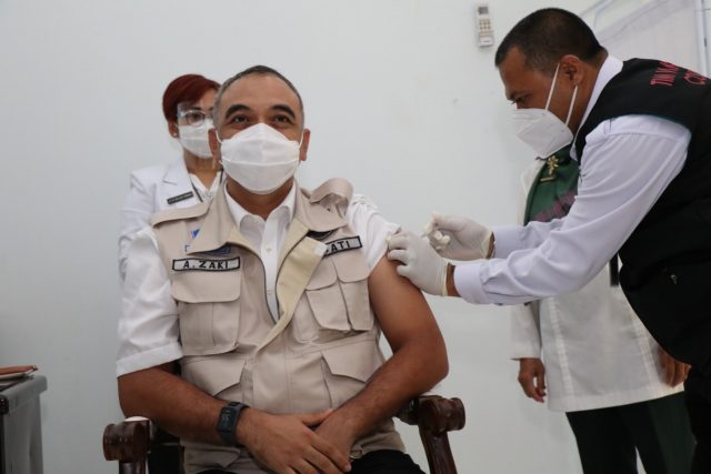 Tangerang, Warta Reformasi – Bupati Tangerang, A. Zaki Iskandar bersama 9 pimpinan Forkopimda se-Banten jalani vaksinasi Covid-19 perdana. Acara pencanangan vaksinasi tersebut di gelar di Pendopo Bupati Tangerang, Jl Kisamaun Kota Tangerang dengan menerapkan protokol kesehatan, Kamis (14/1/2021).