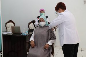 “Seharusnya ada 14 orang yang di lakukan vaksinasi, tetapi pada pelaksanaannya hanya 9 orang saja yang divaksin, karena pada saat pemeriksaan pra vaksin ternyata ada faktor lain seperti tensi darah yang tinggi sehingga mengakibatkan tidak bisa divaksin,” ujarnya.