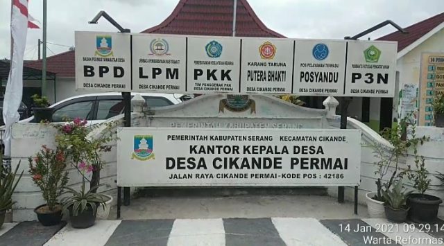Kabupaten Serang, Warta Reformasi – Pemerintah Desa (Pemdes) Cikande Permai menyalurkan bantuan sosial tunai (BTS) sebesar Rp.300.000,- per kepala keluarga (KK) untuk tahap pertama tahun 2021, di kantor desa setempat, Kamis (14/1/2021).