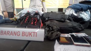 Tambah Kapolres, terduga tersangka dengan barang bukti yang ada berupa pakaian pelaku 2 pasang sepatu tiga unit Handphone KTP dari masing-masing tersangka beberapa kartu ATM, uang cash Rp. 390. 000,- , satu unit sepeda motor Honda dan satu unit mobil suzuki carry, sudah diamankan petugas selanjutnya terduga tersangka akan dijerat pidana pasal berlapis,” tutup Kapolres.**@Ropendi