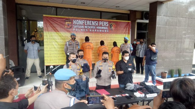 Kapolres didampingi Wakapolres dan humas serta kasat reskrim, menyampaikan terduga pelaku utama dan dua orang yang membantu pelaku kasus pembunuhan dan penganiayaan sudah berhasil ditangkap dan di ungkap oleh jajarannya, satuan reserse kriminal Polres Karawang,” ungkapnya.