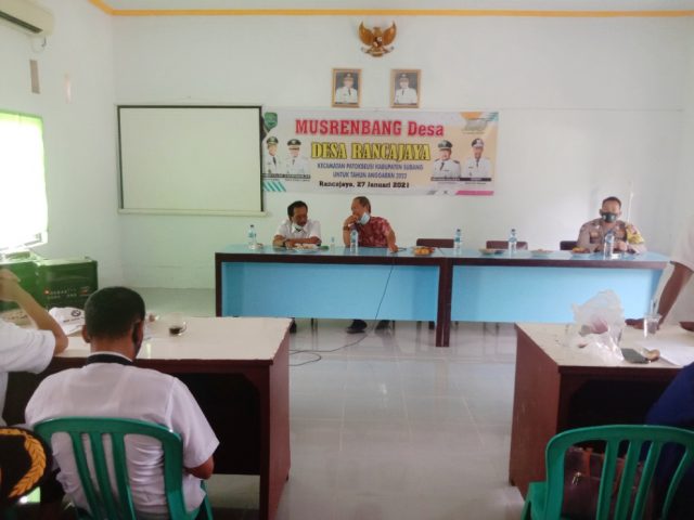 Subang – Jabar, Warta Reformasi- Pemerintah Desa (Pemdes) Rancajaya Kecamatan Patokbeusi Kabupaten Subang – Jabar menggelar musyawarah rencana pembangunan desa (Musrenbangdes) untuk membahas dan menetapkan rencana kerja pemerintah desa (RKPDes) Tahun Anggaran 2022, Kades berharap semua usulan datpat terealisasi.” Kegiatan berlangsung dilaksanakan di Aula Kantor Desa setempat, Rabu (27/1/2021) Siang.