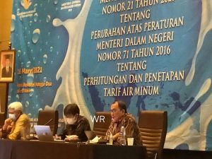 Sementara Direktur BUMD, Budi Santoso BLUD dan Barang Milik Daerah Kementerian Dalam Negeri menyampaikan berlakunya Permendagri nomor 21 tahun 2020 tentang perubahan atas peraturan Mendagri nomor 71 tahun 2016 tentang Perhitungan dan Penetapan Tarif Air Minum akan berlaku tahun 2022 agar peraturan ini bisa dilaksanakan gubernur dan walikota dalam mengelola air minum didaerahnya masing-msaing.