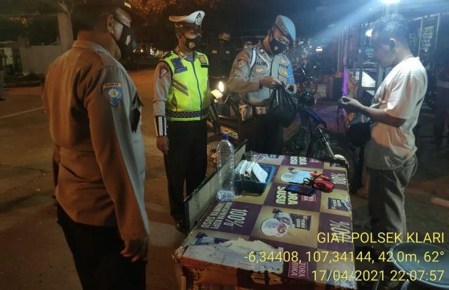 Karawang -Jabar, Warta Reformasi – Jajaran Polsek Klari bekerjasama dengan TNI dan instansi terkait melakukan operasi Woro-woro dalam rangka menerapkan Pemberlakuan Pembatasan Kegiatan Masyarakat (PPKM) dimasa pandemi Covid-19, Sabtu (17/4/2021) dimulai pukul 22.00 wib.