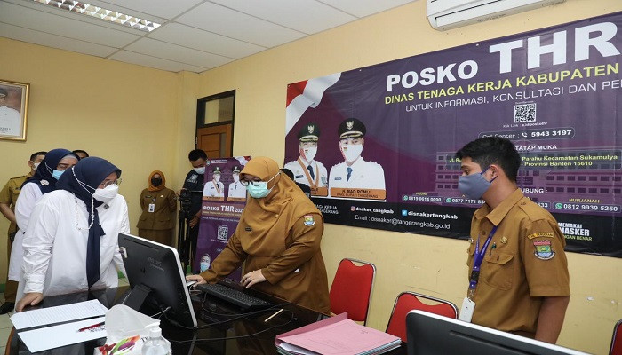 Bupati Tangerang, A. Zaki Iskandar mengatakan, hari ini posko THR Kabupaten Tangerang kedatangan Menteri Tenaga Kerja RI Ida Fauziyah, beliau langsung melihat proses pengaduan tindaklanjut pada posko THR Kabupaten Tangerang. Kondisi saat pandemi sekarang ini membuat sejumlah industri maupun tenaga kerja sedang tidak stabil akibat dampak wabah Covid-19.