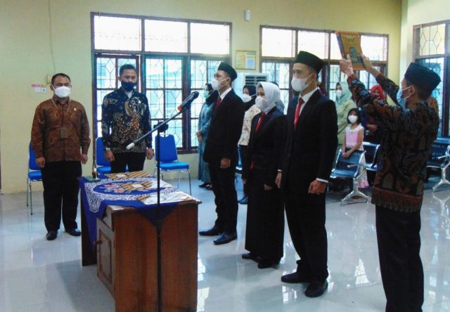 Ketua Pengadilan Negeri (PN) Menggala, Aris Fitra Wijaya, secara resmi melantik dan pengambilan sumpah terhadap 3 panitera pengganti di Pengadilan Negeri Menggala, bertempat di ruang sidang utama Pengadilan Negeri setempat, Kamis (24/6/2021).