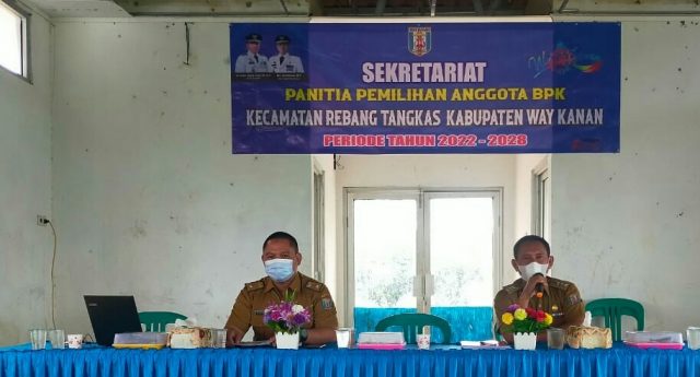 Dalam kegiatan ini seluruh Kepala Kampung (Desa) se-Kecamatan Rebang Tangkas dan panitia pemilihan anggota BPK, kegiatan ini dilaksanakan dengan mematuhi protokol kesehatan.**@(Erwin)