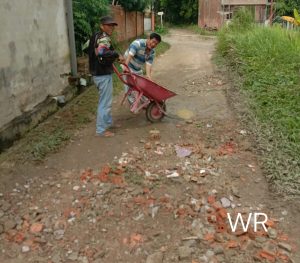 Belum Tersentuh Bantuan Pemerintah, Warga Perumahan Palem Prabujaya Gotong Royong Perbaiki Jalan Rusak