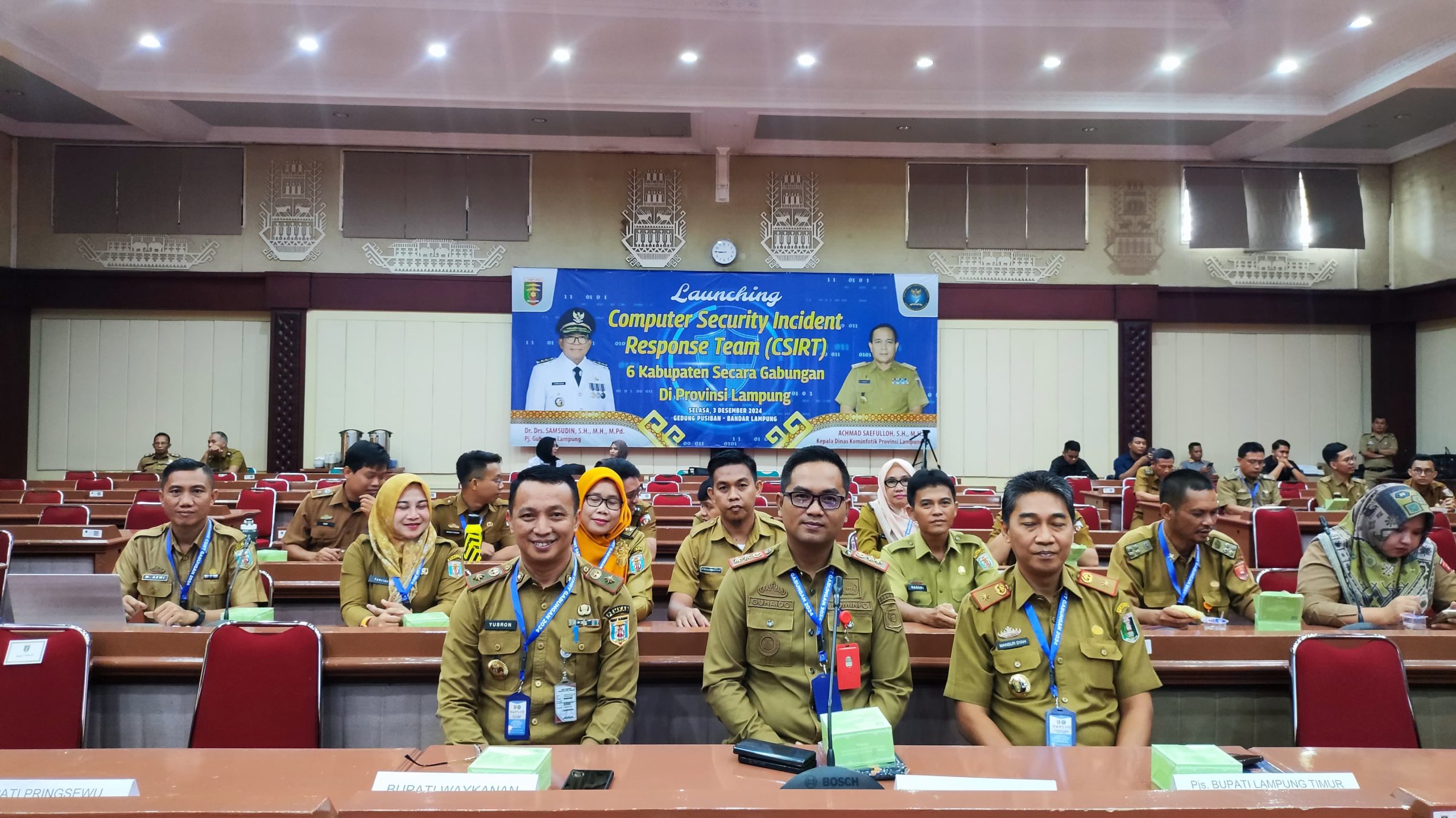 Dihadiri dan dibuka oleh Pj. Gubernur Lampung, Dr Drs Samsudin SH MH MPd dan Deputi Bidang Keamanan Siber dan Sandi Pemerintahan dan Pembangunan Manusia, BSSN, Dr Sulistyo SSi ST MSi, pada acara tersebut dilakukan launching CSIRT Gabungan untuk Kabupaten Way Kanan, Kabupaten Lampung Barat, Kabupaten Lampung Timur, Kabupaten Pringsewu, Kabupaten Lampung Selatan dan Kabupaten Lampung Utara.