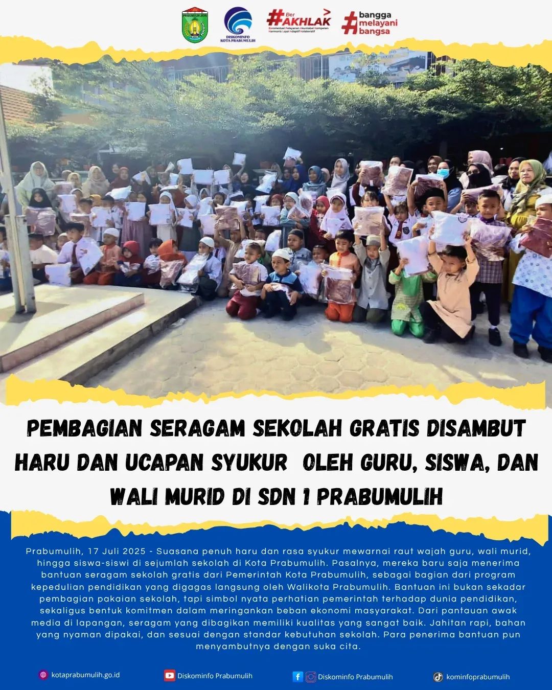 Sementara itu, Walikota Prabumulih, yang akrab di sapa Cak Arlan dalam Pesannya menyampaikan bahwa program bantuan seragam ini merupakan bagian dari upaya pemerintah kota untuk menghadirkan pemerataan akses pendidikan dan mengurangi beban orang tua, khususnya dari kalangan menengah ke bawah.