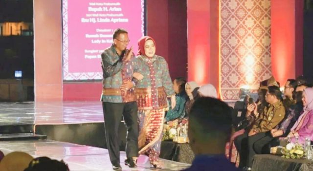 Wali Kota Prabumulih, H. Arlan dan Ibu Hj. Linda tampil percaya diri dalam balutan songket Prabumulih, memperlihatkan pesona budaya lokal yang tak kalah menarik dari daerah lain. Kehadiran mereka mendapat sambutan hangat dari para tamu undangan yang memenuhi lokasi acara.