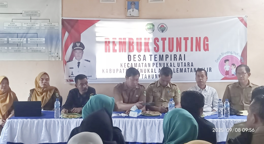 Kabupaten PALI, Wartareformasi.com – Mengingat pentingnya mensosialisasikan pola hidup sehat (PHS) kepada masyarakat, Pemerintah Desa (Pemdes) Tempirai Kecamatan Penukal Utara Kabupaten Penukal Abab Lematang Ilir (PALI) Provinsi Sumatra Selatan bersam kader PKK, Posyandu, tokoh masyarakat dan berbagai pihak menggelar rembuk stunting, berlangsung di Kantor Desa setempat, Senin (8/9/2025).