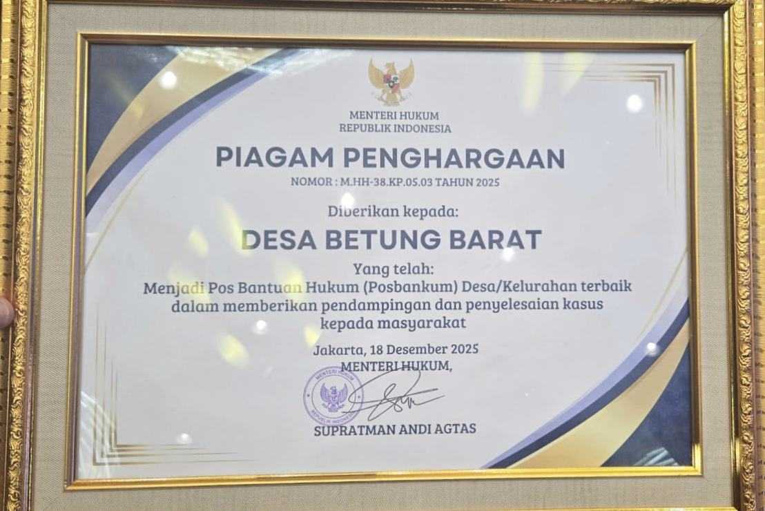 Jakarta, Wartareformasi.com – Desa Betung Barat kembali mengukir sejarah bagi Kabupaten Penukal Abab Lematang Ilir (PALI). Dari sekian banyak desa di Sumatera Selatan, hanya Pemerintah Desa Betung Barat Kecamatan Abab yang mendapat undangan sekaligus apresiasi langsung dari Kementerian Hukum Republik Indonesia dalam kegiatan Refleksi Akhir Tahun Kementerian Hukum Tahun 2025, yang digelar di Jakarta, Kamis (18/12/2025).