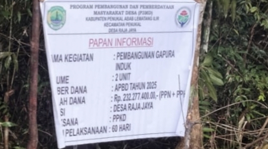 “Pembangunan Gapura ini dilaksanakan oleh Tim Pelaksana Kegiatan Desa (TPKD) sebanyak dua unit yang bersumber dari Alokasi Dana Desa (ADD) tahun anggaran 2025,” jelasnya.